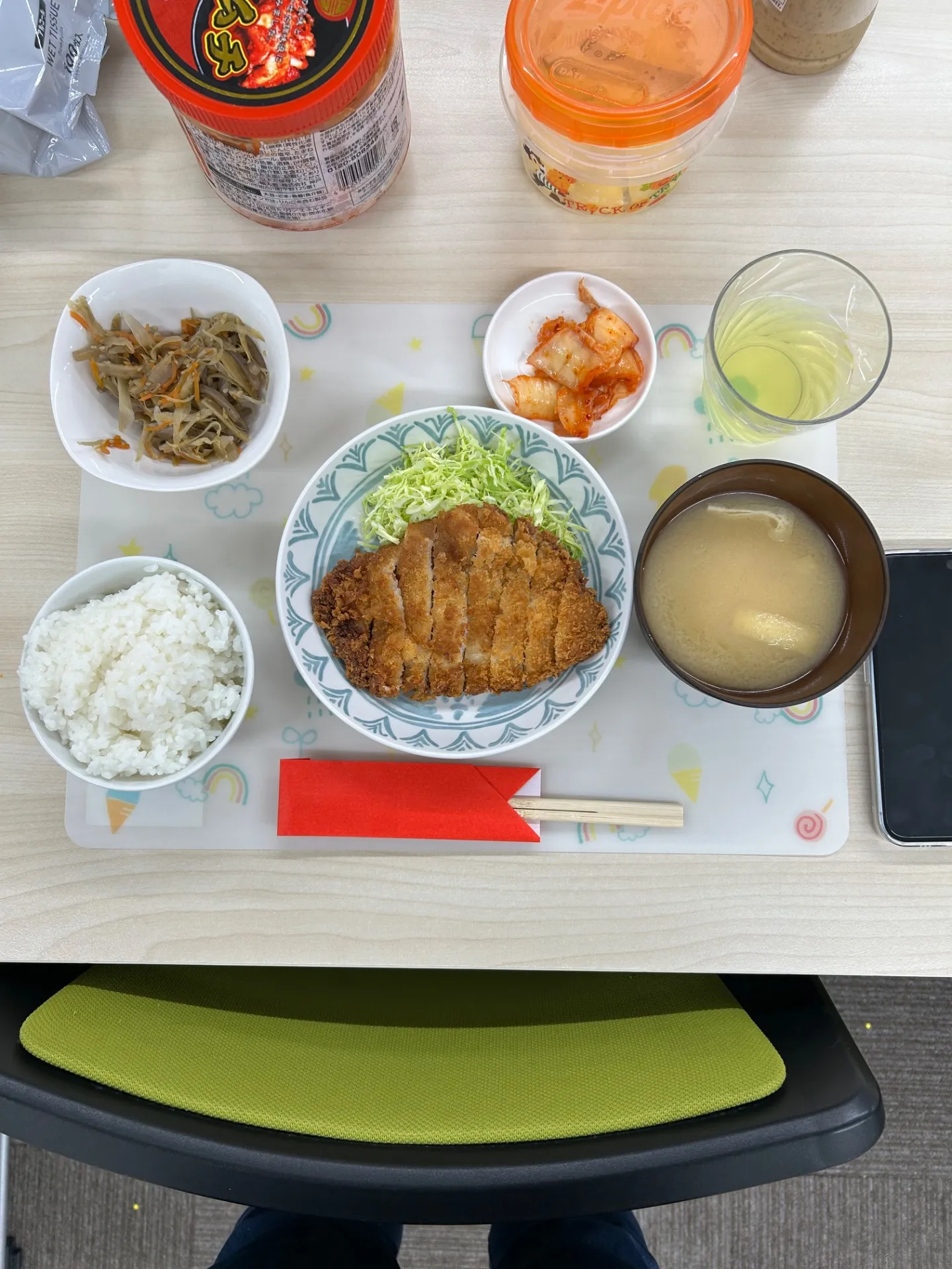 本日のオレンジラボのランチは、とんかつ定食でした。