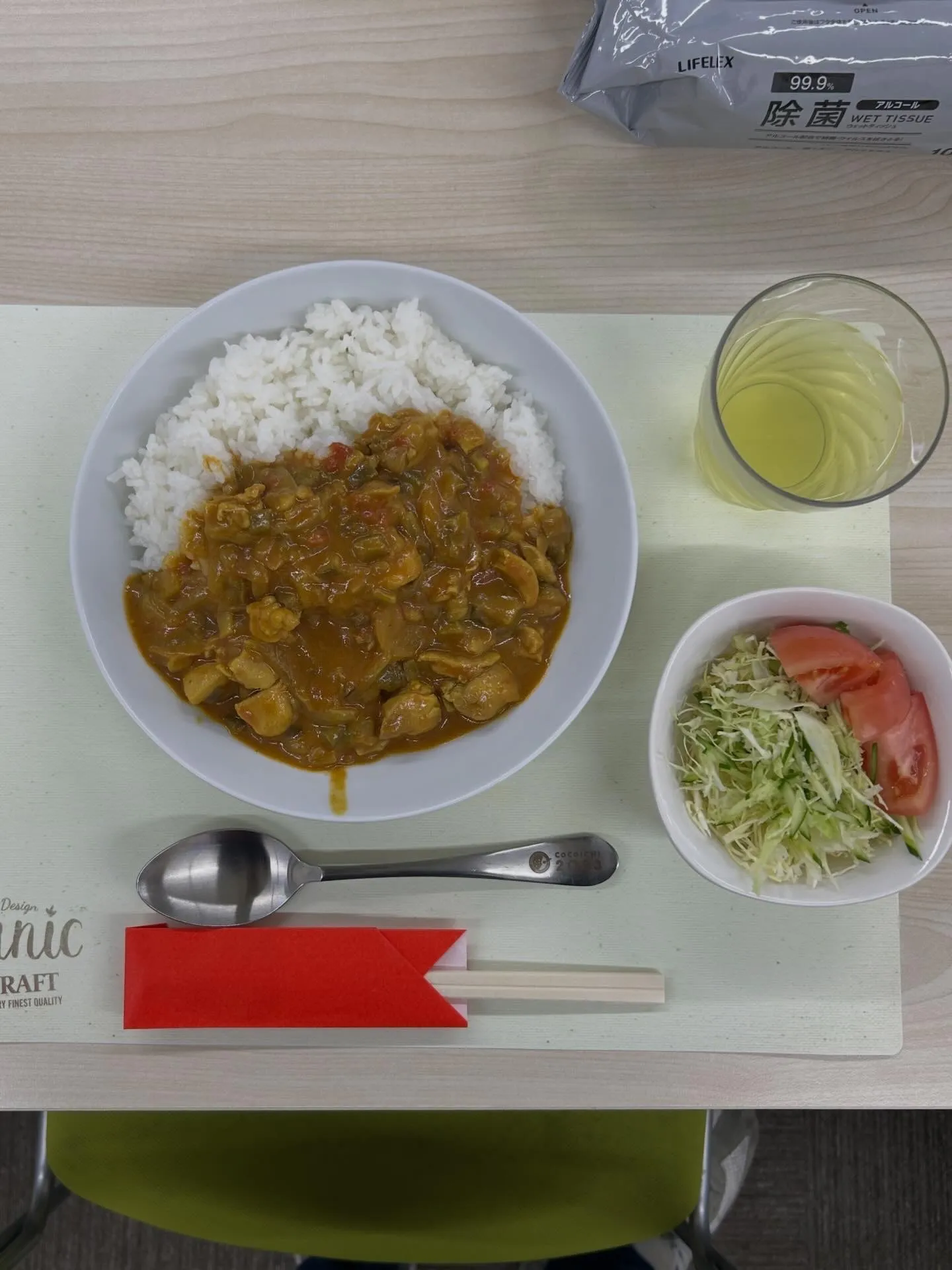 ごはんと一緒に、サラダとお茶も添えて、栄養バランスの良いランチになりました。